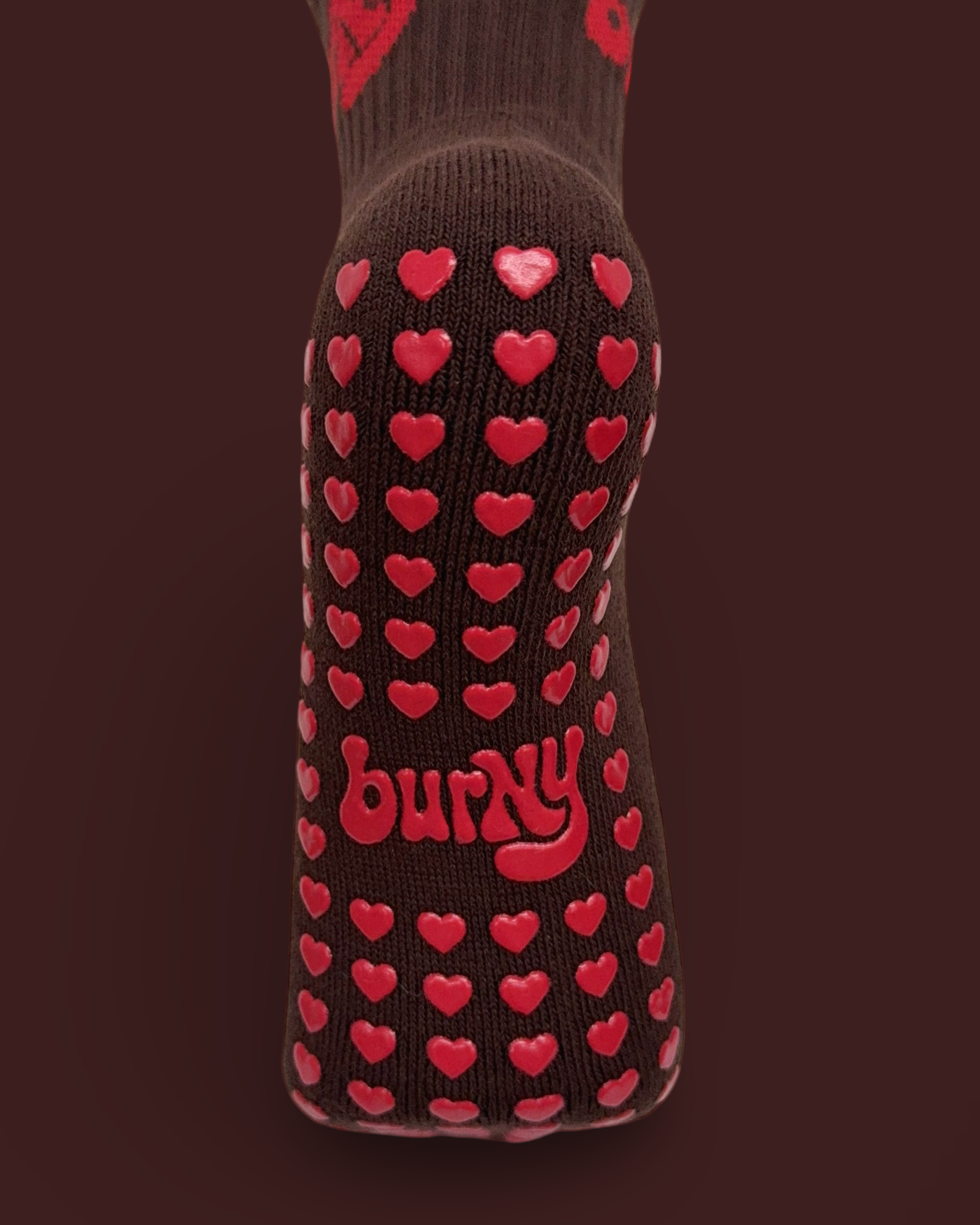 Unsere Grip Socks mit roten Herz-Grips sehen nicht nur süß aus, sondern geben dir den perfekten Halt für jede Pilates- oder Barre-Class.